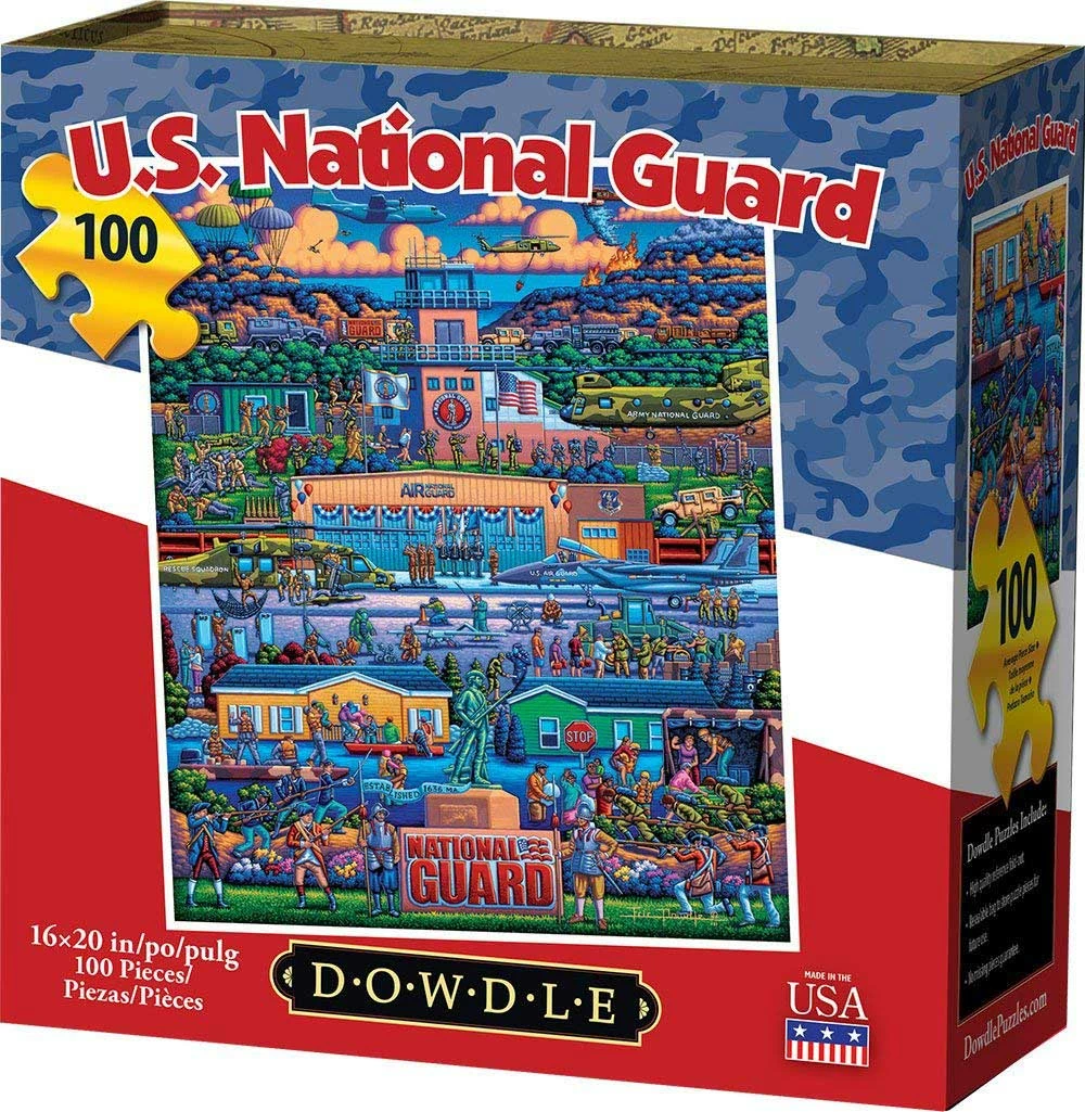 In the 500 piece jigsaw puzzle, U.S. National Guard by Dowdle Folk Art, an illustration of all things U.S. National Guard is depicted. The artist, Eric Dowdle, made this illustration colorful, detailed, and interesting. This 10+ puzzle has dimensions of 16″ x 20″ which makes this a fun and challenging activity to do with the entire familyβespecially if you enjoy military illustrations!