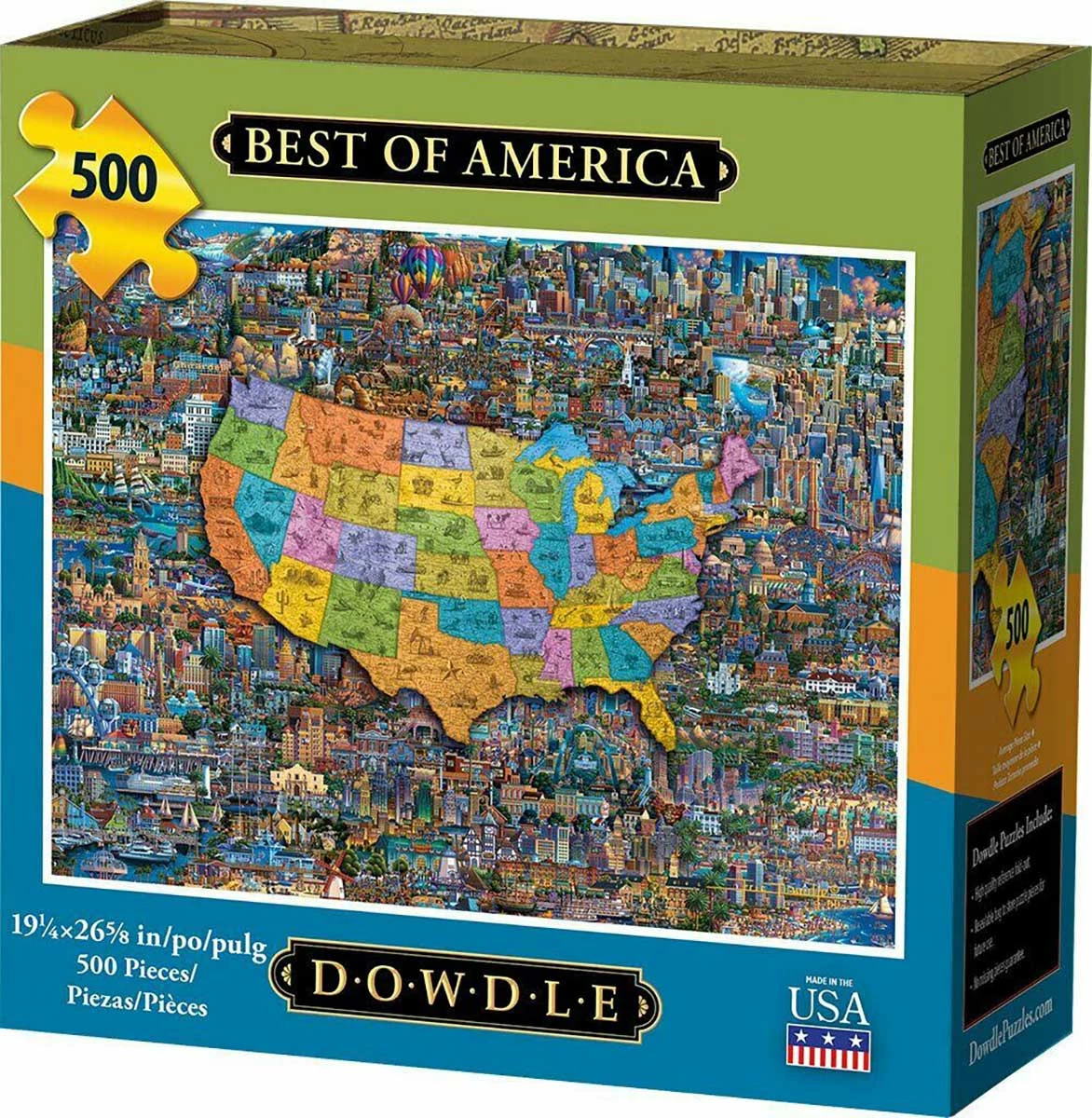 The United States of America is a vast, diverse, and beautiful country. This puzzle is so jam-packed we couldnβt even fit maps of Alaska and Hawaii (we have included images of the breath-taking beauty these states provide β no slight meant 49 and 50, we love you.) Images in each of the lower 48 mainland states show some of the things each βNiftyβ state provides. Surrounding the map are images from a few of Eric Dowdleβs diverse paintings. We have listed the painting names in case you would like to see the full-sized image to celebrate America.