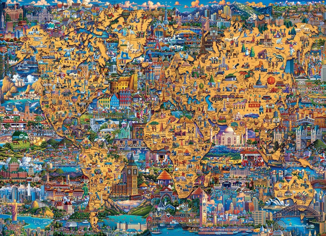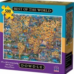 In the 500 piece jigsaw puzzle, Best of World by Dowdle Folk Art, an illustration of all things World is depicted. The artist, Eric Dowdle, made this illustration colorful, detailed, and interesting. This 10+ puzzle has dimensions of 16″ x 20″ which makes this a fun and challenging activity to do with the entire familyβespecially if you love World!