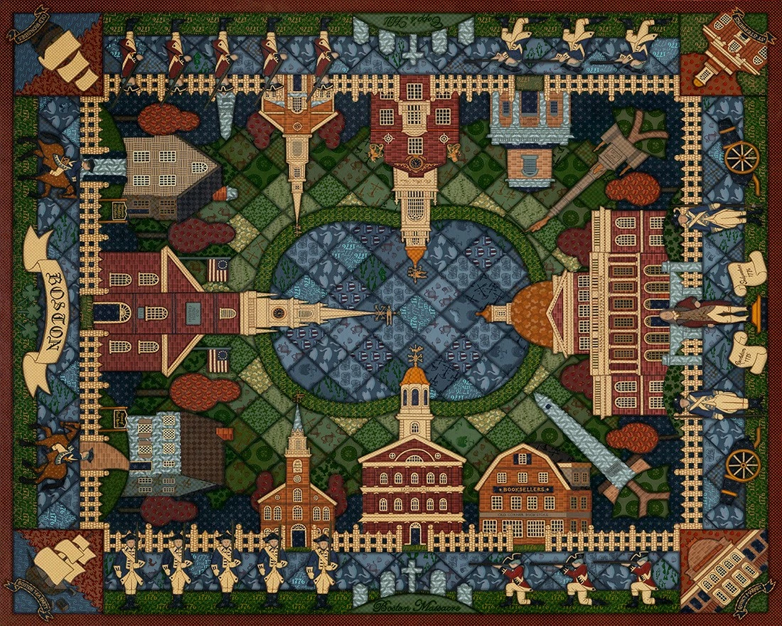 The quilt motif, featuring famous Boston landmarks in delightful detail, makes this a must-have item for puzzle fans. Revisit scenes and icons from our country’s history as you work on this challenging and rewarding work of art.