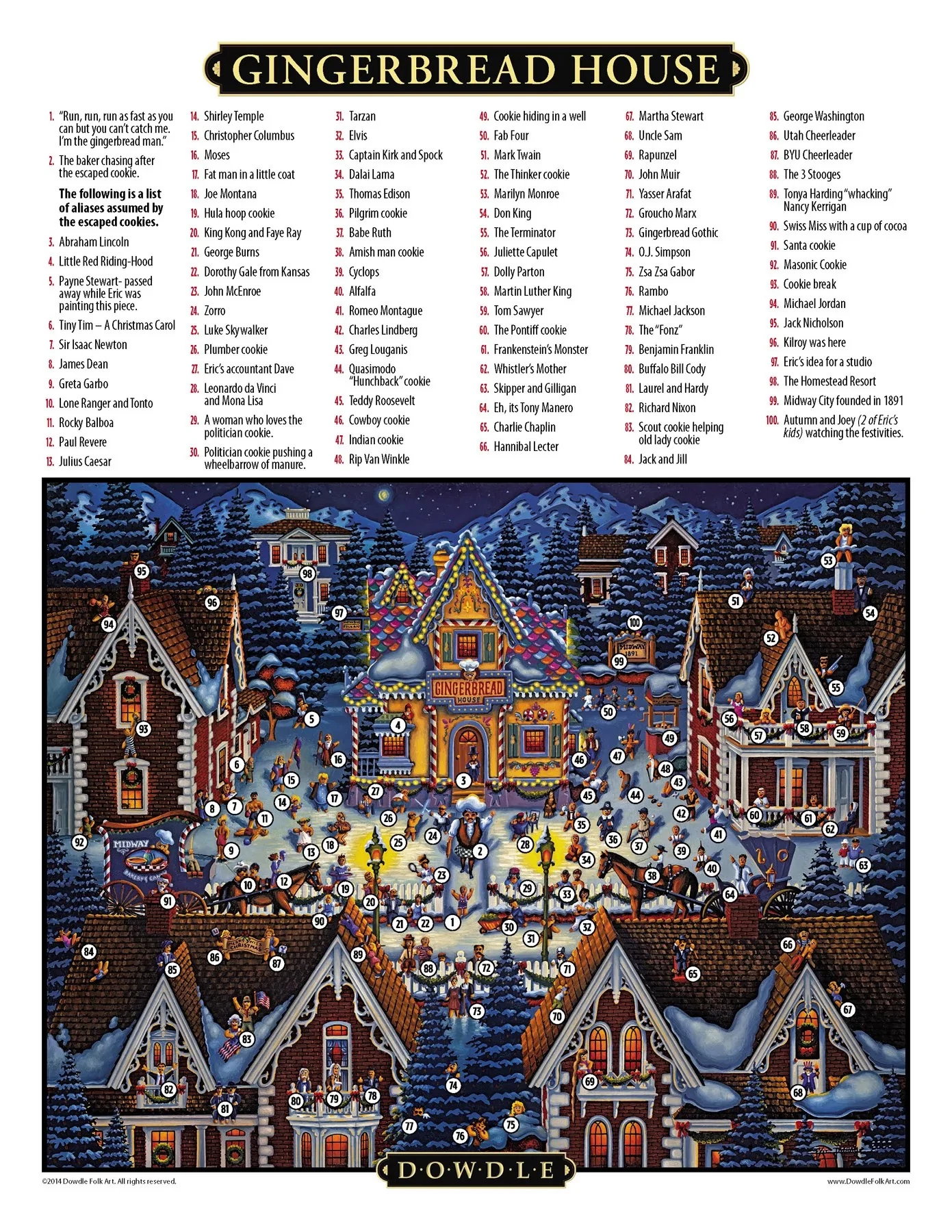 Dowdle Folk Art Puzzles are one of the most popular ways to enjoy Eric Dowdle’s artwork. Enjoy it over and over again or mount it and frame it for a fun decoration. Puzzle is 500 pieces and is 16 x 20.