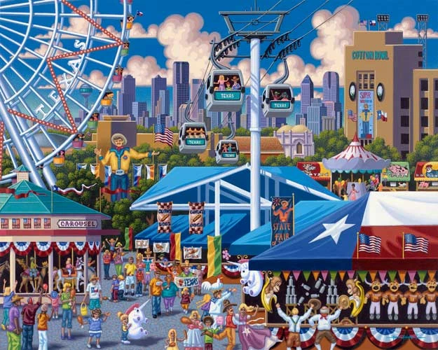 Step right up and enjoy the hustle and bustle of the crowd at the Texas State Fair! Youβll have hours of fun on the midway as you discover the stories of the people you see strolling, eating mysterious fried foods from the βWeβll fry it if youβll try itβ booth, riding the ferris wheel and carousel, and celebrating the fun that only a state fair can offer.