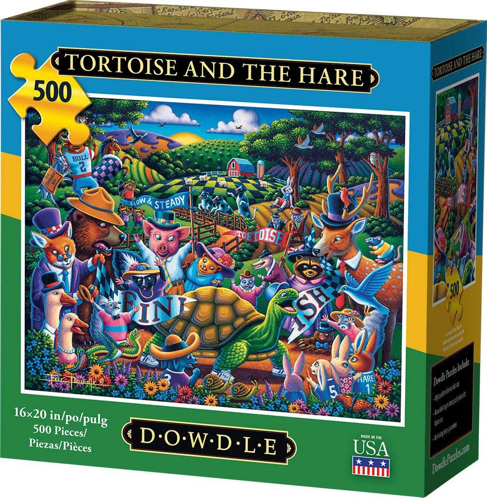 Look! Look! You are just in time to witness Tortoise win the Big Race against Hare, the fastest creature around! Sounds impossible right? But let me tell you, tortoise challenged Hare to a race after being teased for how slow he walks and came out on top! Hear Tortoiseβs fans cheering him on while Hareβs fans remain stunned at what just happened. Painted in folk art style, this Aesopβs Fable of The Tortoise and the Hare stands as a classic story you, family and friends can relive as you build the puzzle, piece by piece, until you triumphantly finish! On your mark, get setβ¦GO!