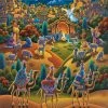 Nothing is more iconic than the American red barn, but the Doncaster Round Barn is very unique. Built about 1882 by mining entrepreneur Noah Armstrong to house his racehorses and features an indoor training track. Beautifully captured here with this 24โx 30โ 1000 piece puzzle. By Chuck Haney