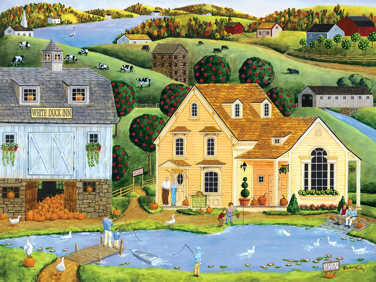 This MasterPieces 18″ x 24″ 300PC EZ Grip Town & Country Puzzle is the perfect way to sit back, relax, and enjoy the simple pleasures in life. The Town & Country collection features the work of the incredibly talented folk artist, Art Poulin. Considered one of America’s foremost folk artists, Art Poulin paints timeless canvases of inviting landscapes. On top of being a master folk artist, Art also served in the US Army for 27 years, and is a classical pianist. With a folksy village and bayfront view, and even an artist painting peacefully on the pier, this puzzle is sure to offer you an afternoon of puzzling fun! The EZ-Grip technology used to make this puzzle offers larger puzzle pieces that snap together perfectly, without compromising image quality. To reduce its impact on our environment, the chipboard used in this puzzle is made of recycled material.