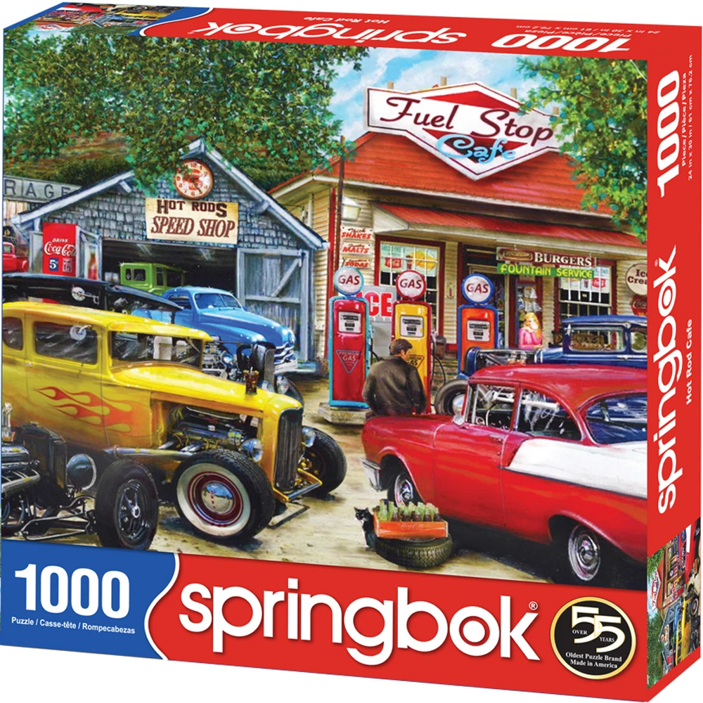 The open road was once a stage to America’s finest cars. Spend a few hours in reverse with a puzzle that stars a yellow 1932 Ford Coupe and a red Chevrolet Bel-Air.