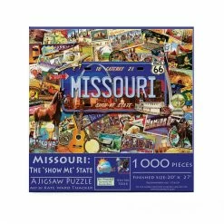 Piece together all things Missouri in Missouri: The “Show Me” State by SunsOut. This 1000 piece collage puzzle features images depicting famous landmarks, scenes, and people in Missouriβs history. The artwork from Kate Ward Thacker is detailed and vibrant and will keep you entertained for hours. The completed puzzle will measure 27β x 20β